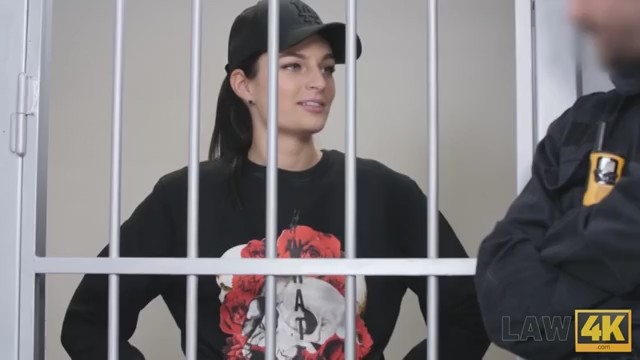 Два патрульных удачно задержали автоугонщицу и отвезли ее в участок. Для начала один из копов обнажил красивую брюнетку и облапал ее, под видом проверки на наличии оружия. Второй страж порядка предложил цыпочке сделку, от которой она не смогла отказаться. Так в ее ротике и оказался хер возбужденного парня. Полицейский страстно долбит волосатую пилотку провинившейся заключенной на столе, получая удовольствие от доминированием над секс-партнершей. Но после камшота, девушку ожидали только наручники, а не воля.